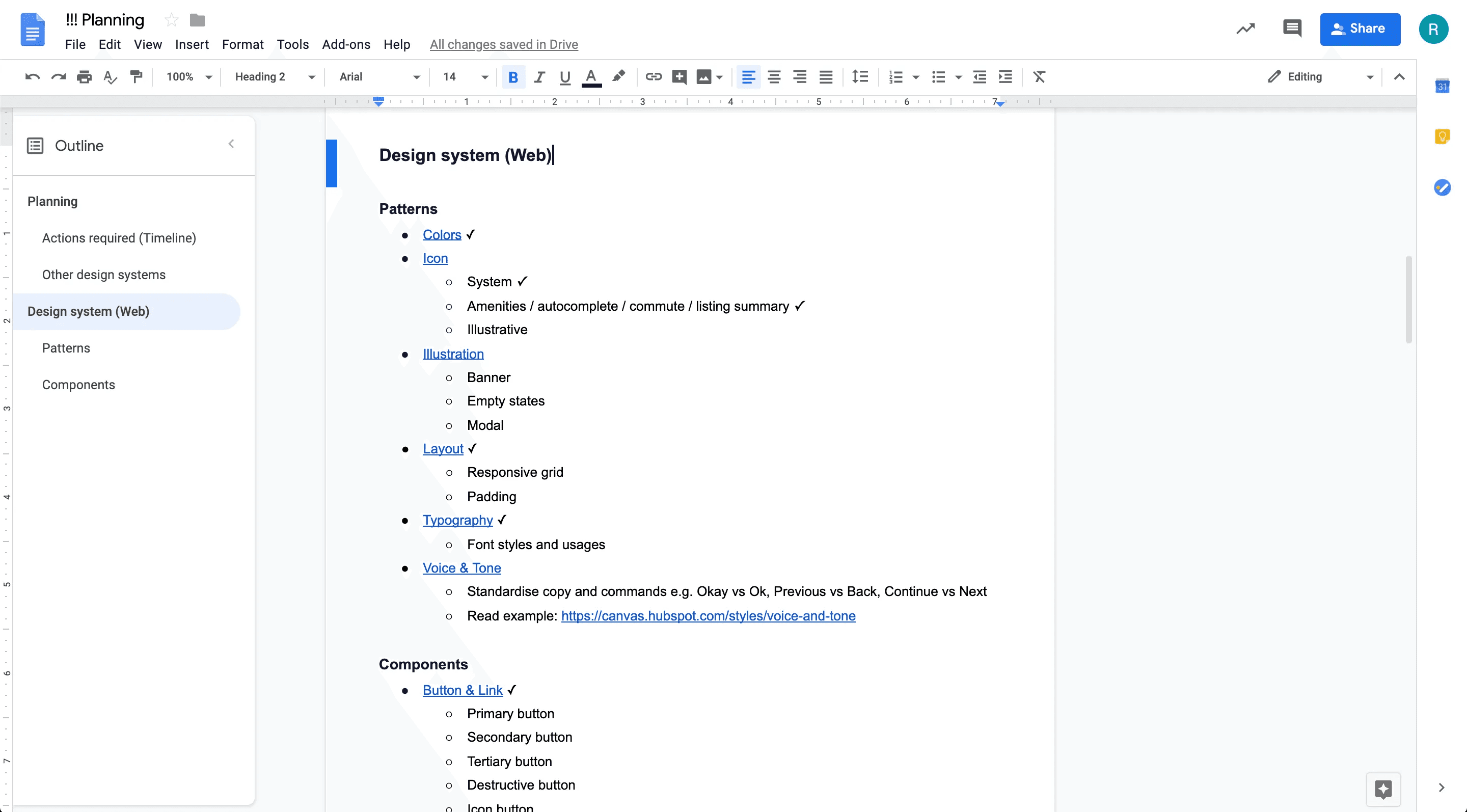 After researching other system designs, I circled back to create a list of patterns and components we needed based on the research and labels we had in the audit file and compared them to other system designs. This gives us an idea of what needs to be reviewed, used, or just a name change, so we can track and plan the time accordingly.