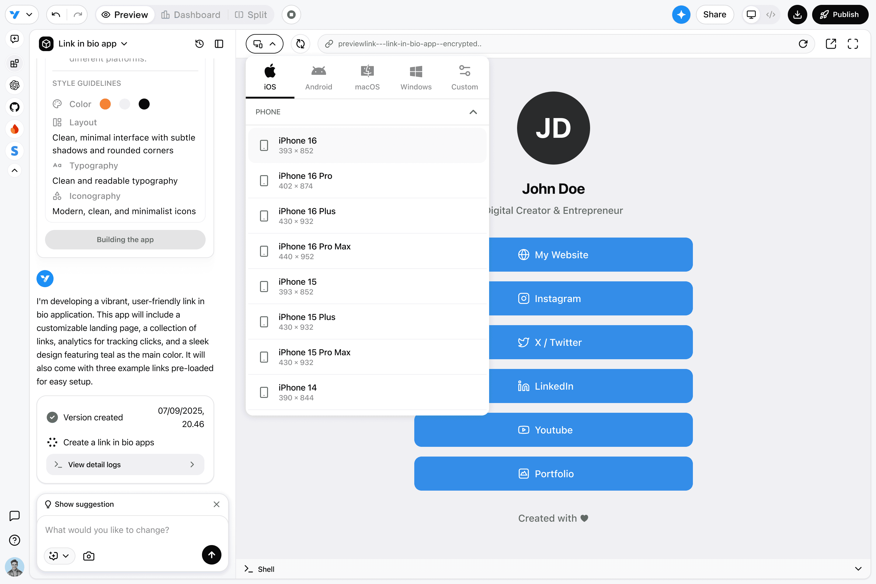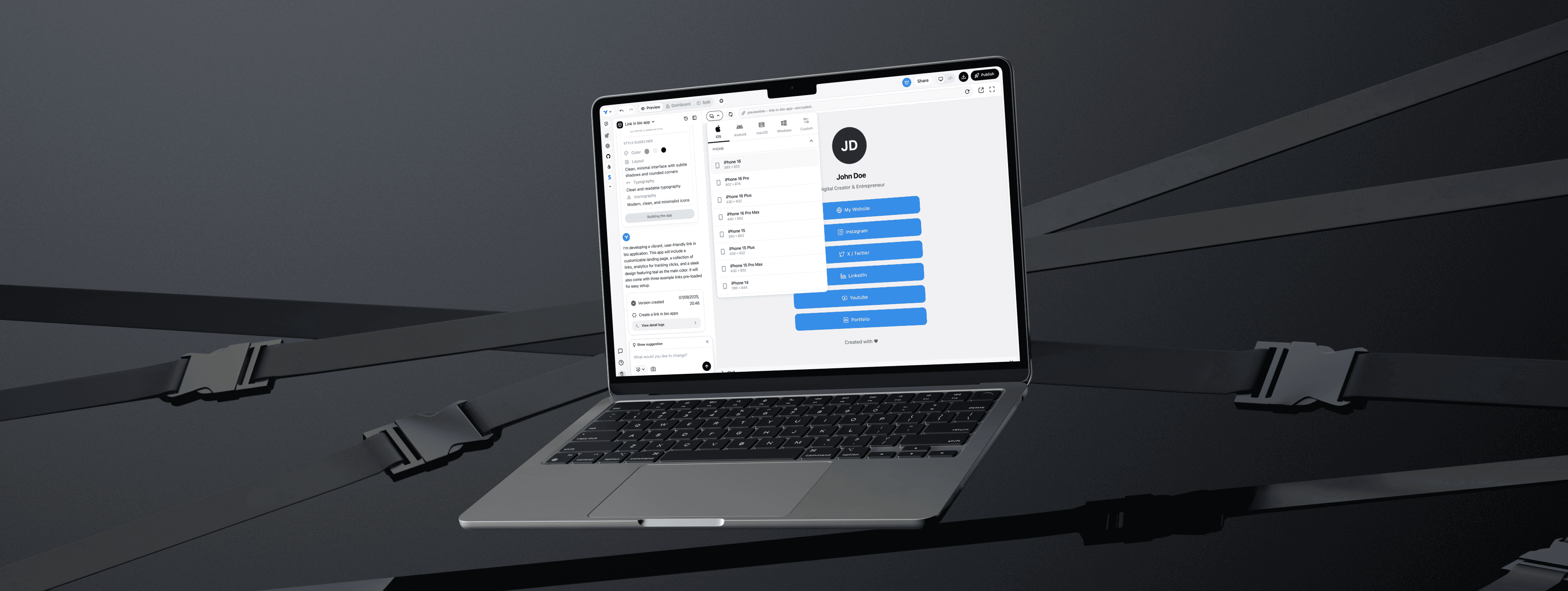 The interface packed too many features into a single view, AI builder, Developer Mode, GitHub integration, multi-device preview, without clear visual hierarchy, leaving users unsure where to start.