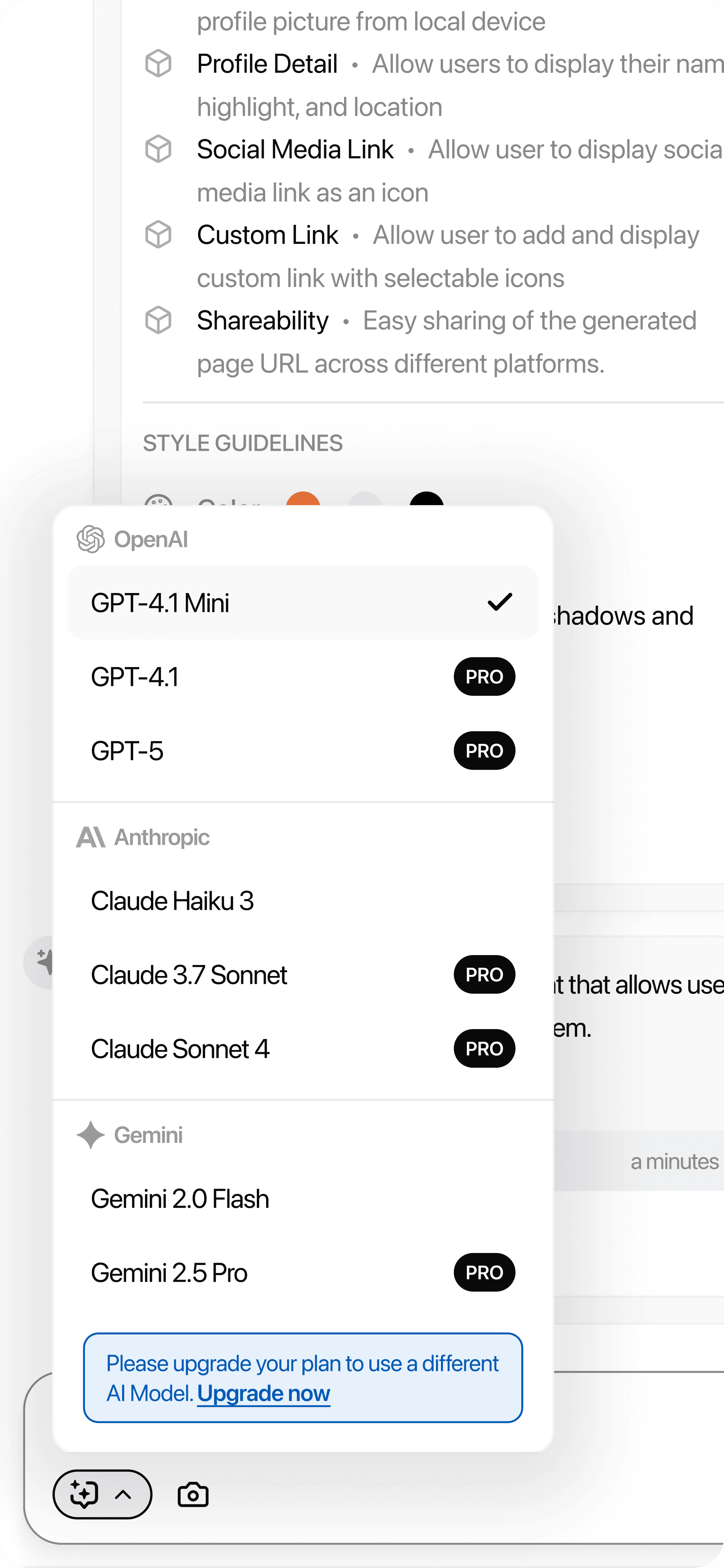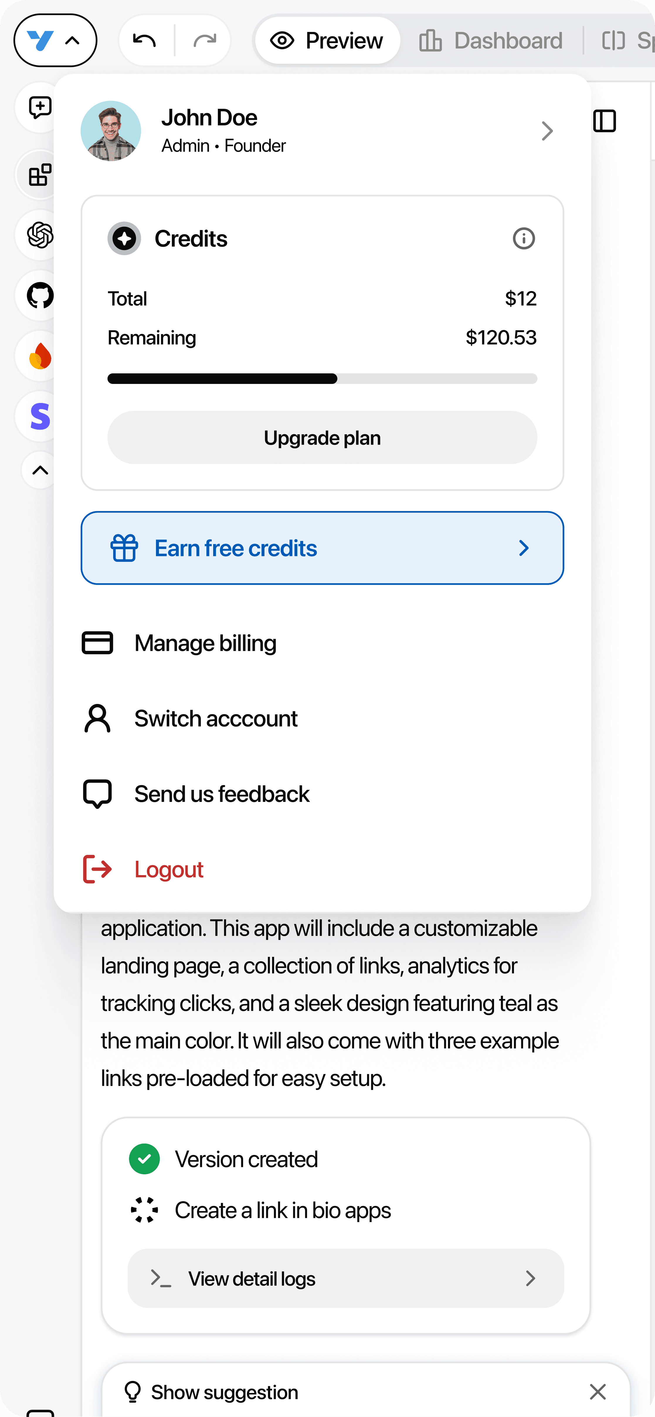Redesigning an Al app builder to eliminate Ul clutter, surface hidden features, streamline upgrades, and make credit information visible-directly addressing user frustrations that were blocking conversions.