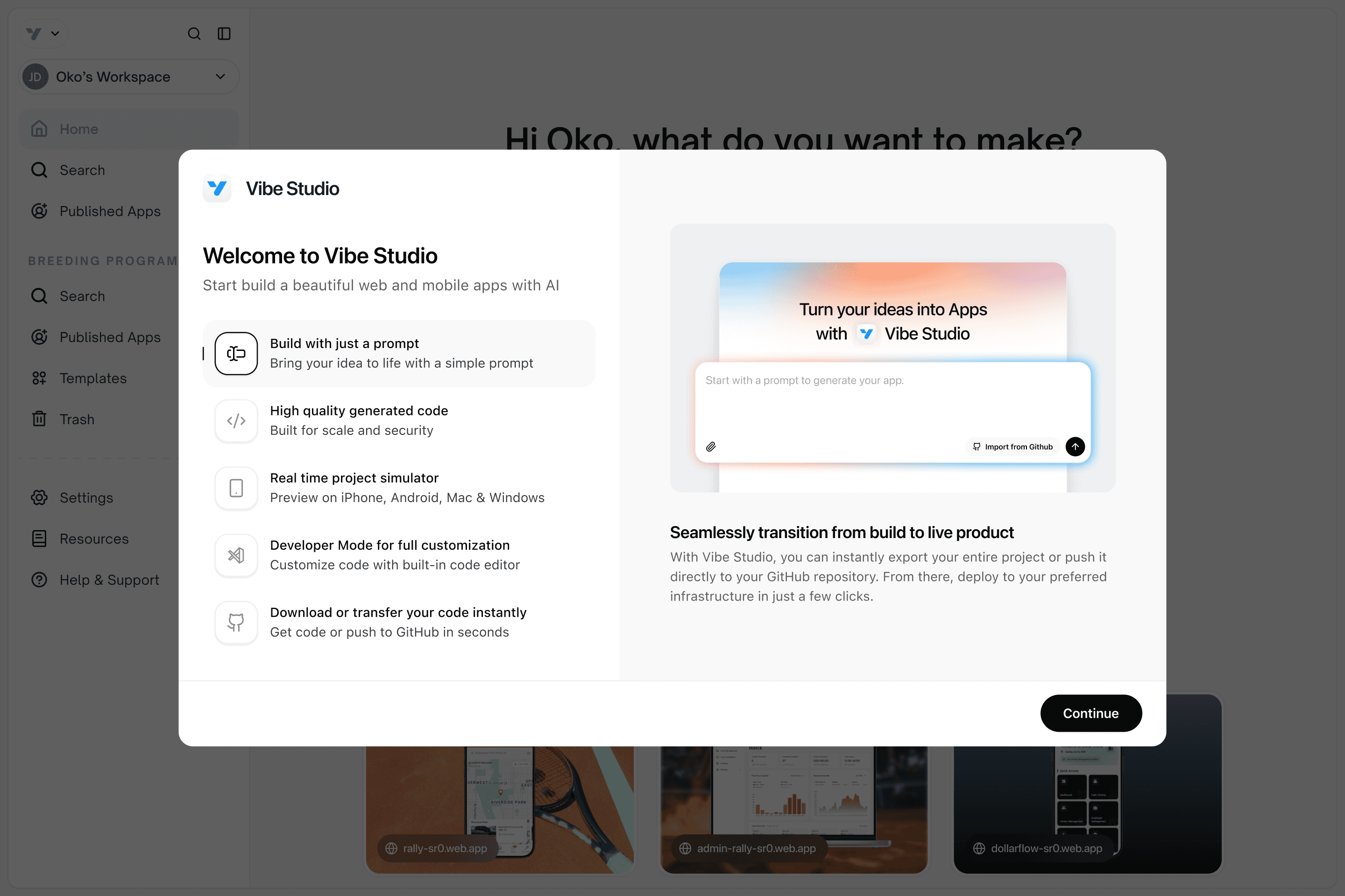 Vibe Studio is an Al-powered platform that enables users to build production-ready mobile and web applications through natural language. The platform offers features like Developer Mode for code editing, GitHub integration for version control, and cross- platform deployment capabilities. Despite these powerful features, user feedback consistently highlighted frustrations with the interface and user experience.